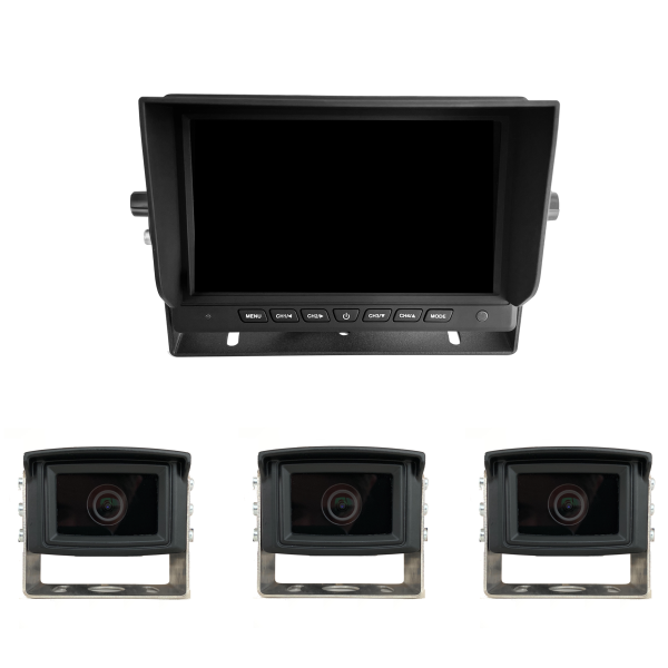 Das 7" Zoll AHD-Kameraset bietet eine flexible und robuste Lösung für den Einsatz an Arbeitsmaschinen und Traktoren. Das Set enthält einen hochmodernen AHD-Monitor, drei HD-Kameras, drei Kamerakabel und Magnethalter für eine einfache Installation. Die AHD-Technologie (Analog High Definition) sorgt für eine deutliche Verbesserung der Bildqualität, sodass Sie ein gestochen scharfes Videobild erhalten.
